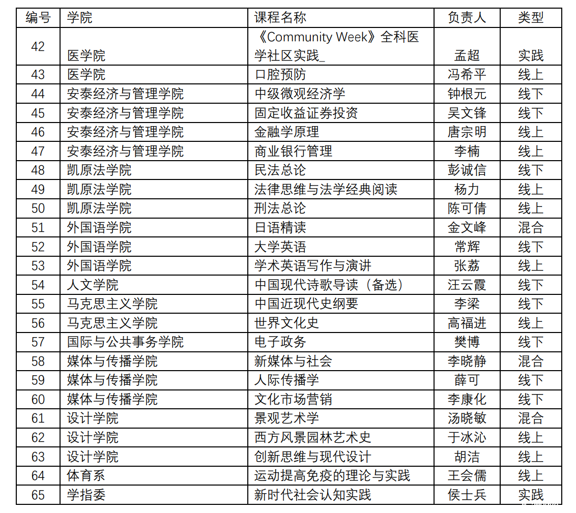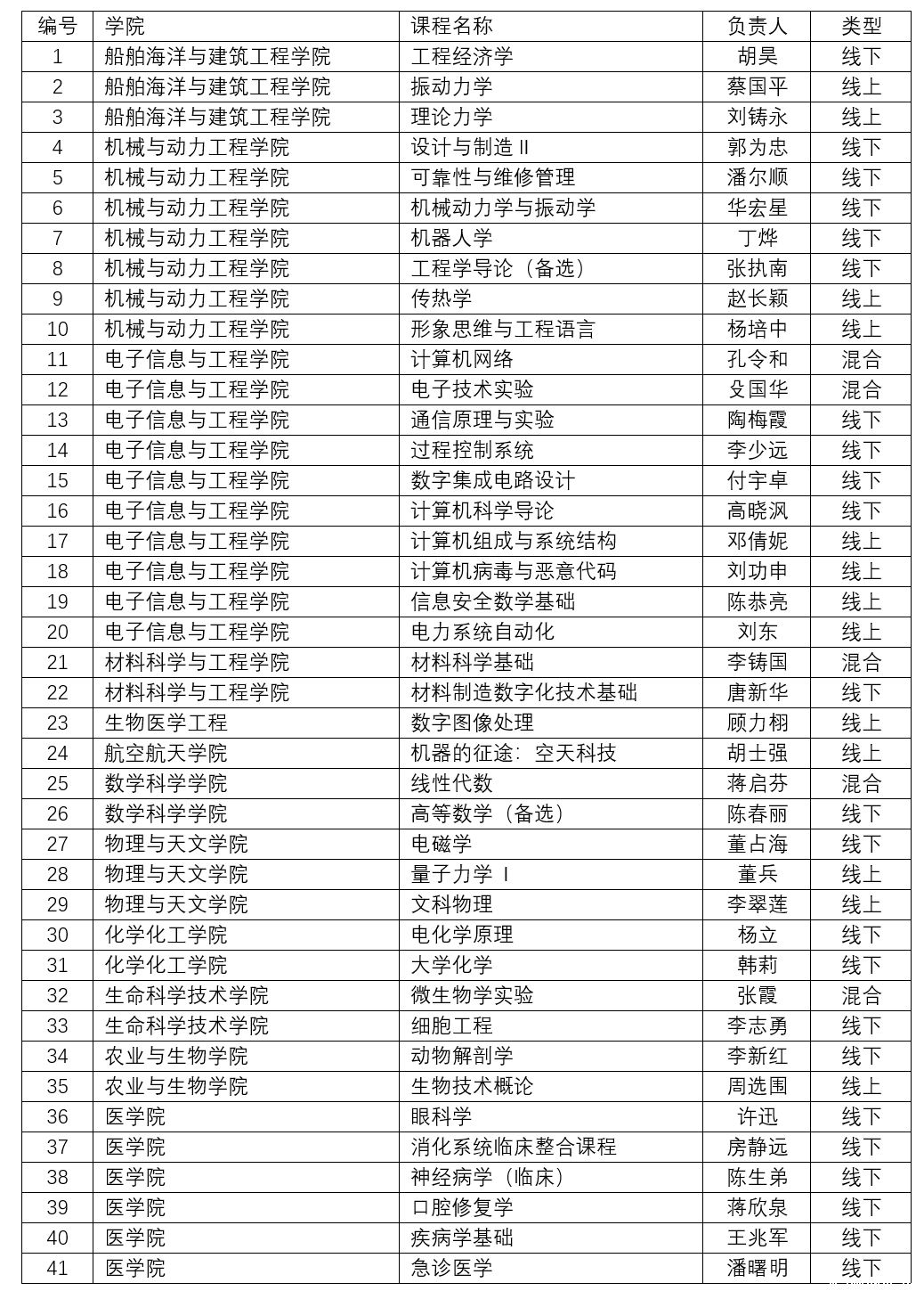 为落实《教育部关于一流本科课程建设的实施意见》)(教高〔2019〕8号)和《教育部办公厅关于开展第二批国家级一流本科课程认定工作的通知》(教高厅函〔2021〕13号)文件精神和要求,学校组织开展了第二批国家级流课程推荐申报工作,经院(系)推荐申报、专家会议评审,推荐65门课程为第二批国家级一流本科课程的申报课程(虚拟仿真实验教学课程另行通知),其中三门课程为备选课程,推荐课程名单详见附表1。